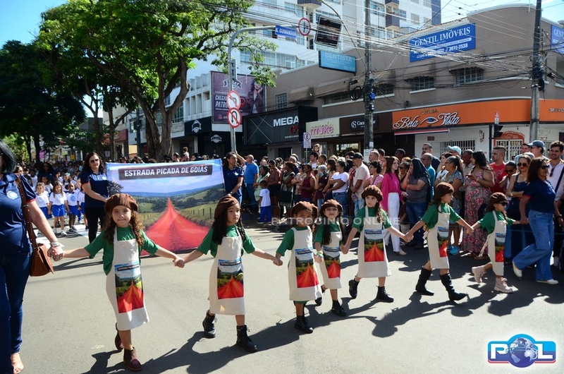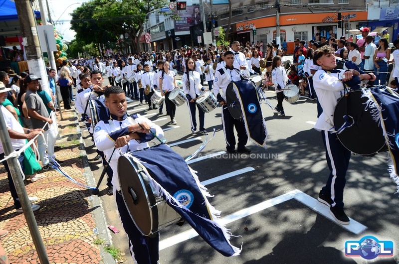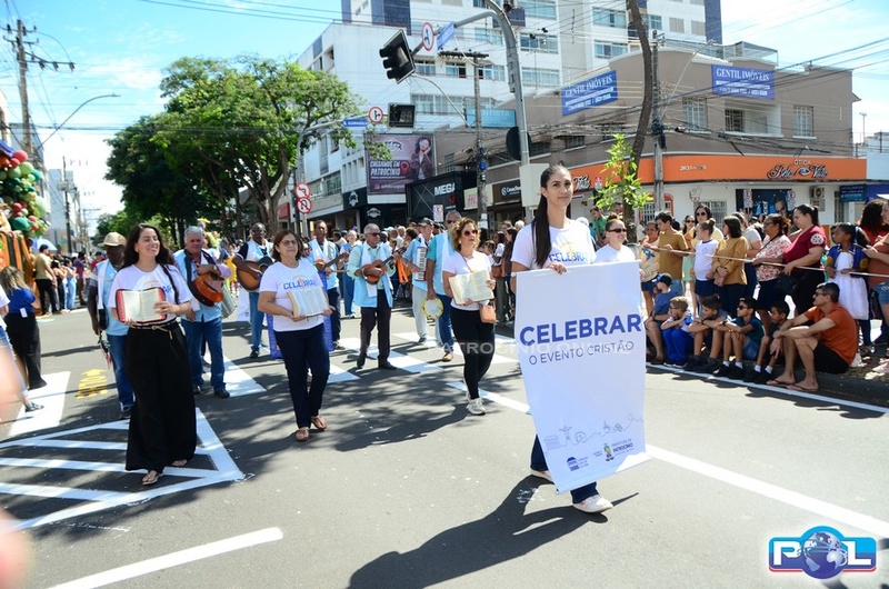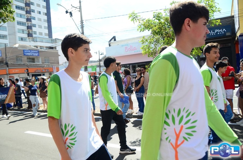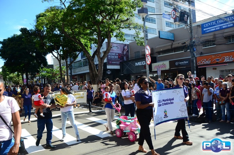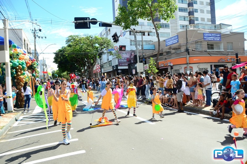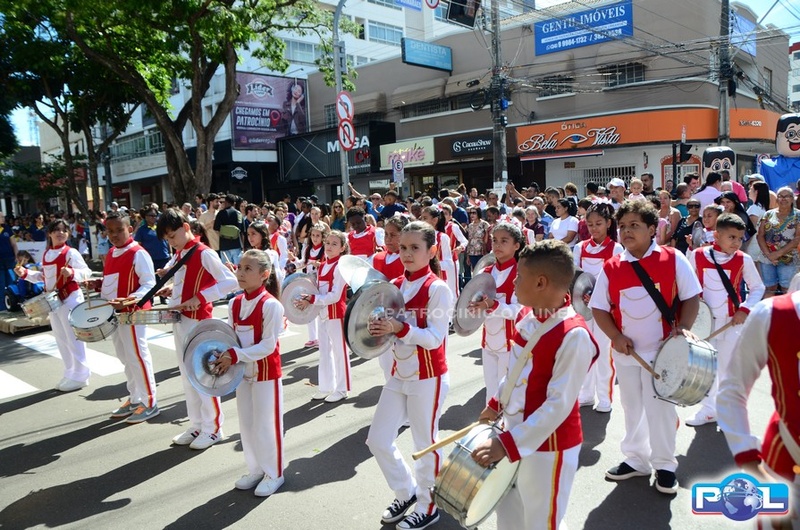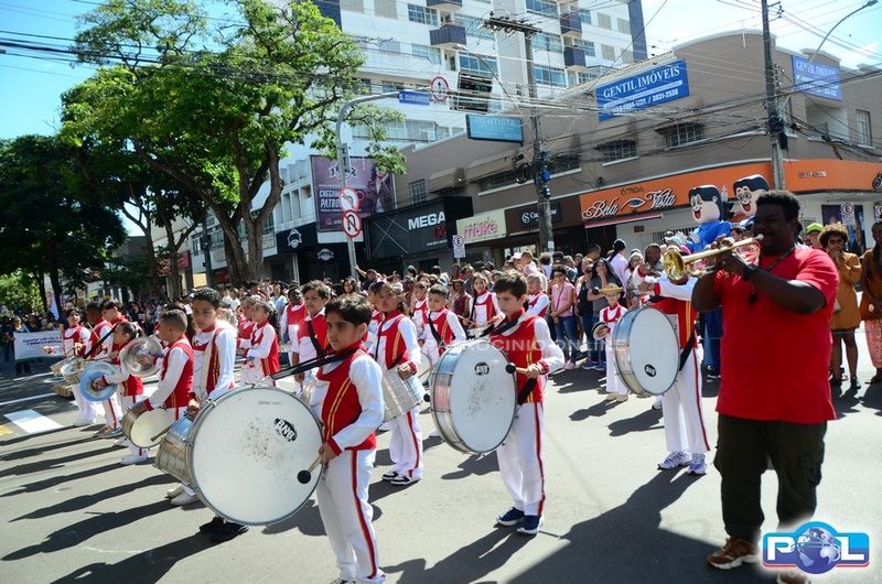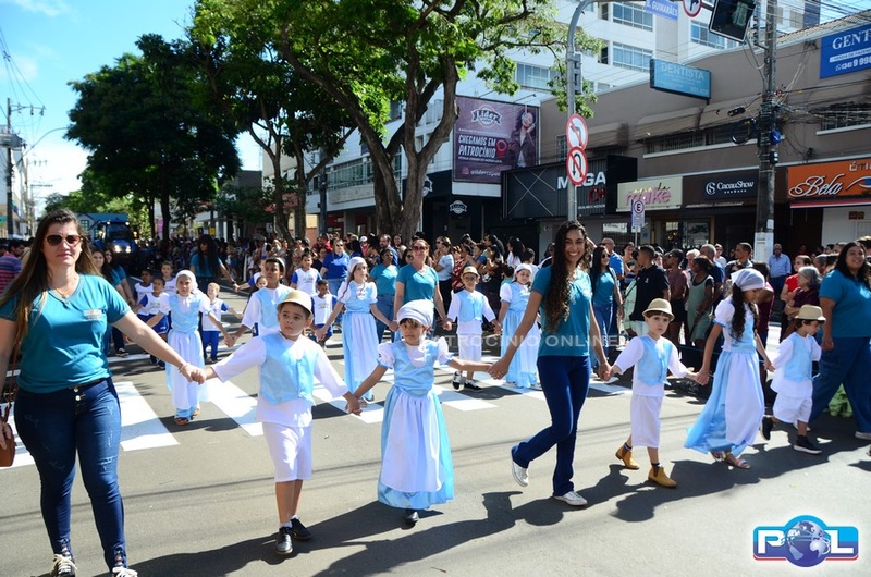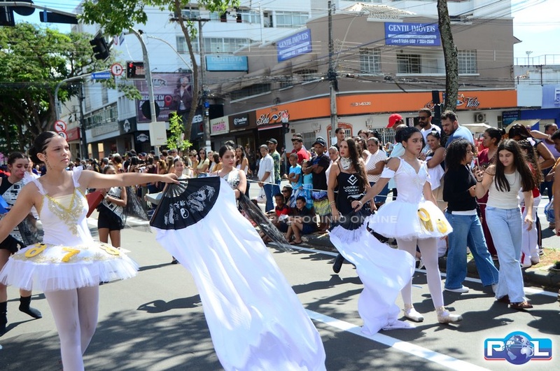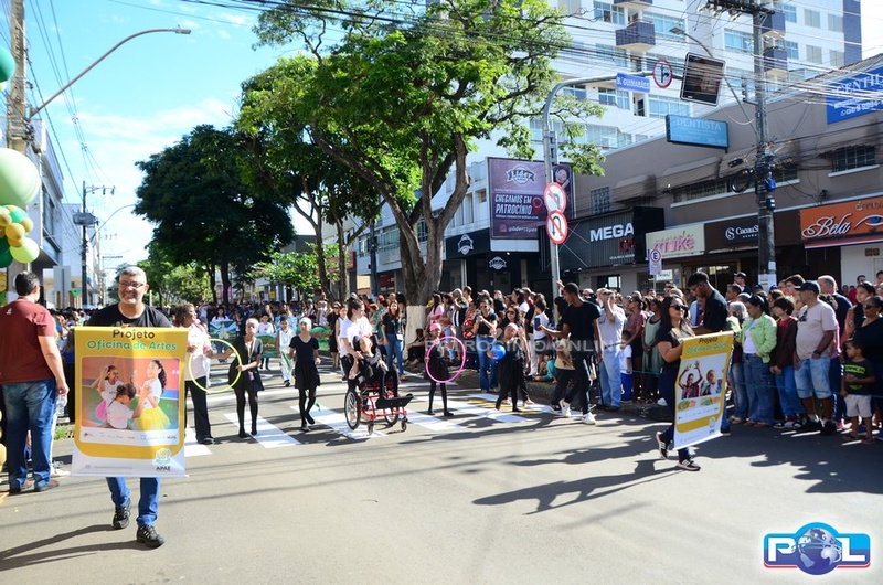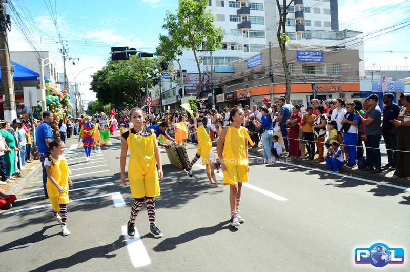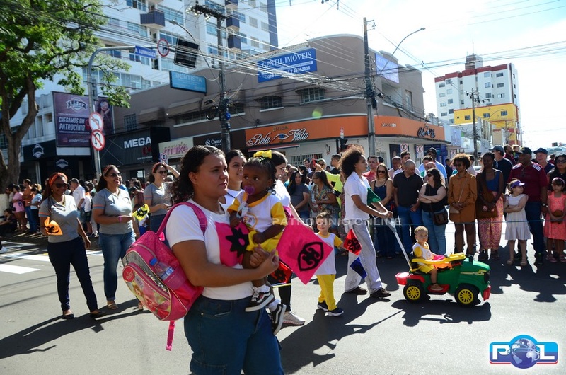A educação teve destaque no desfile, com a participação de projetos e núcleos da rede municipal, evidenciando ações nas áreas de alfabetização, ensino especializado, línguas, ciências, artes, esportes e tecnologia.