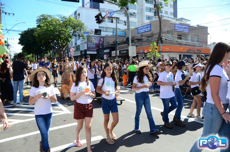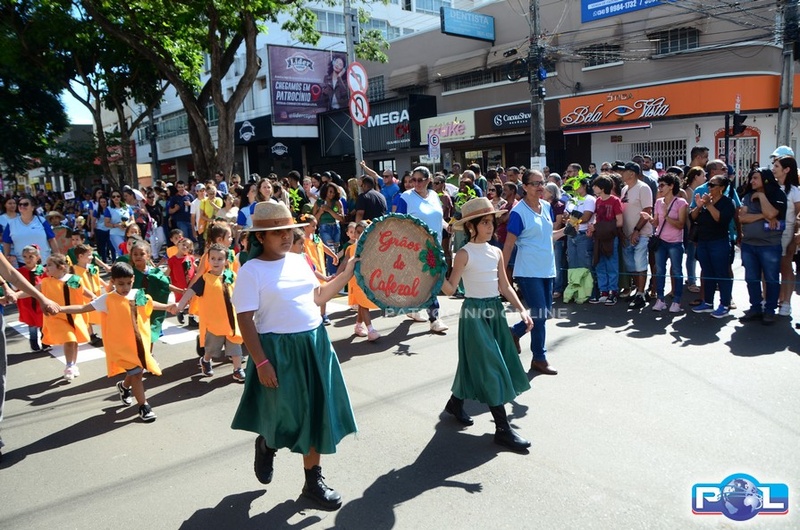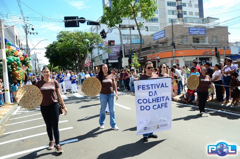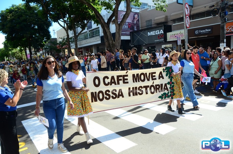 Os tradicionais carros alegóricos também marcaram presença, com a participação da Rainha Mundial do Café, Renata Zucoloto Vieira, e das princesas Maria Clara Silva Oliveira e Katlen Karolayne da Silva de Souza.