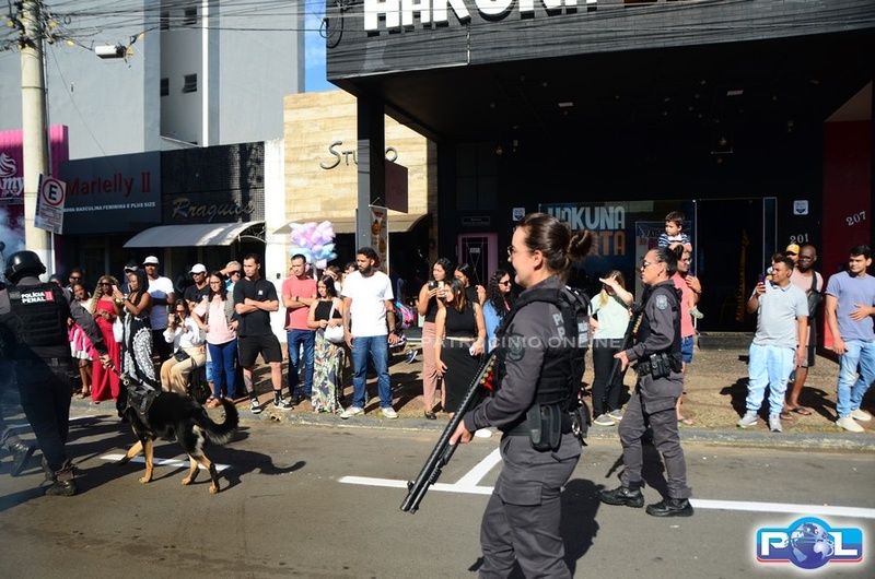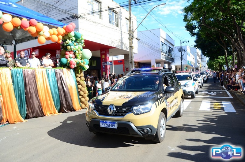 Na sequência, passaram as viaturas e veículos da Polícia Militar, Polícia Militar Rodoviária e Ambiental, Polícia Civil, Corpo de Bombeiros, Defesa Civil, Polícia Penal, SESTRAN, DAEPA e Secretaria Municipal de Obras.