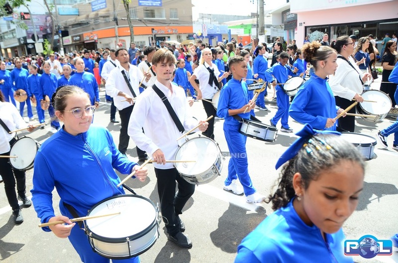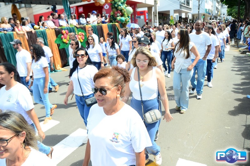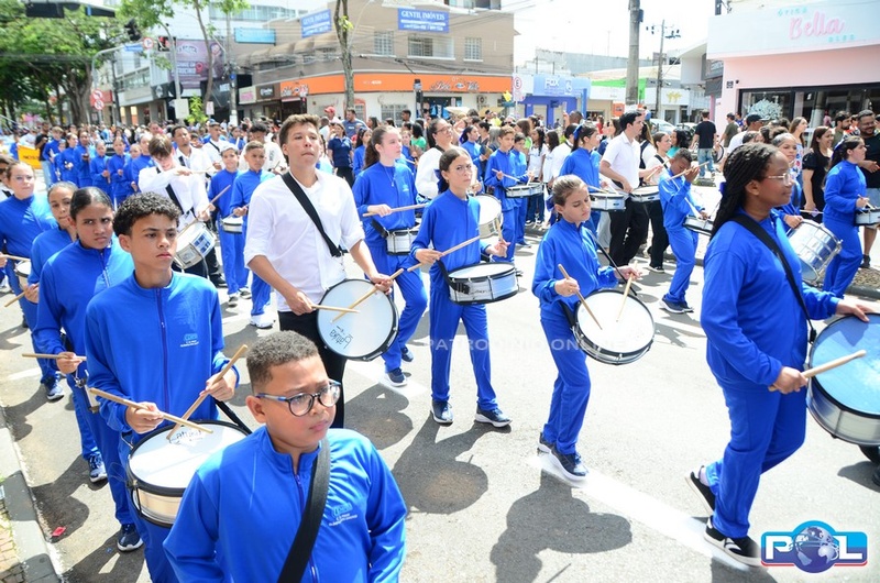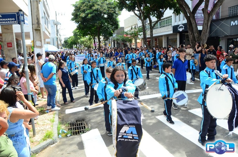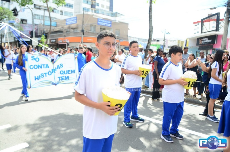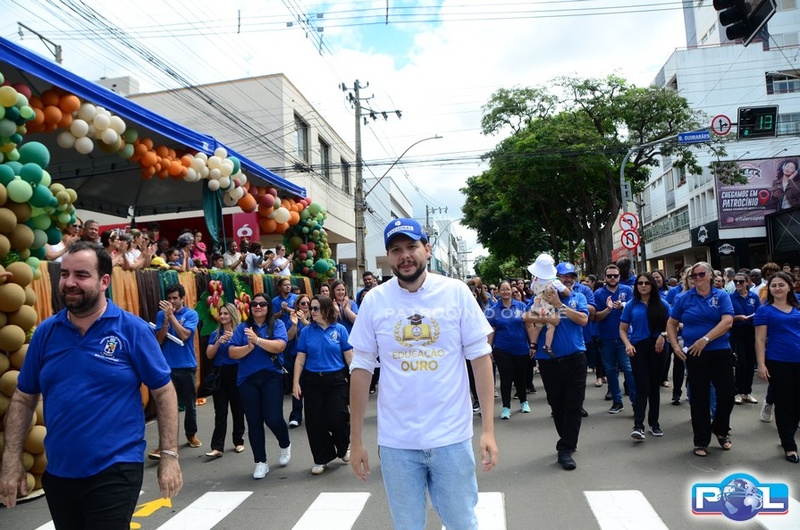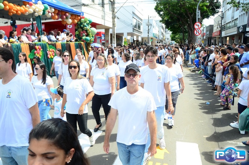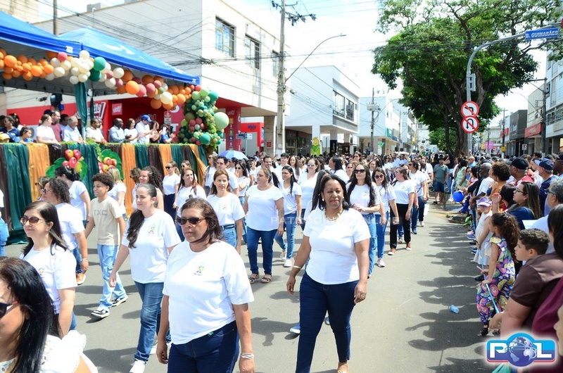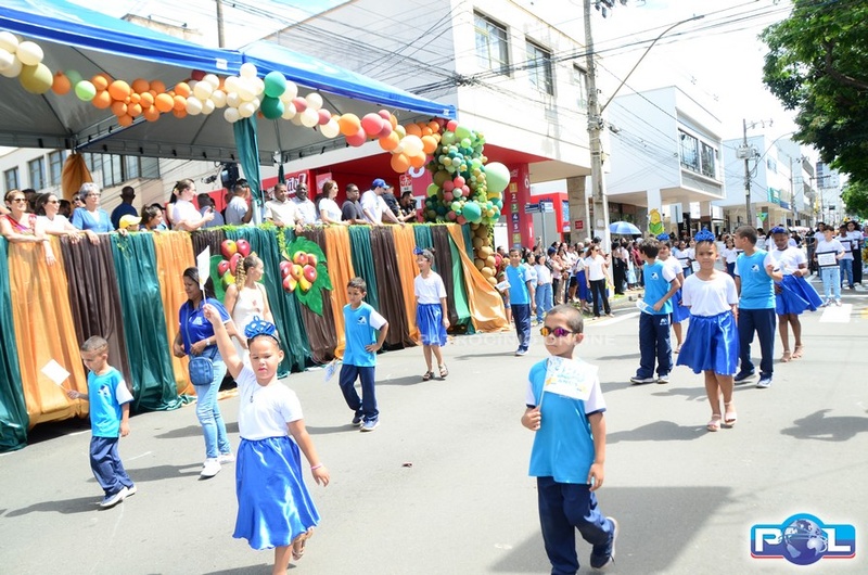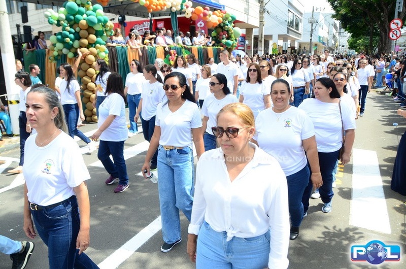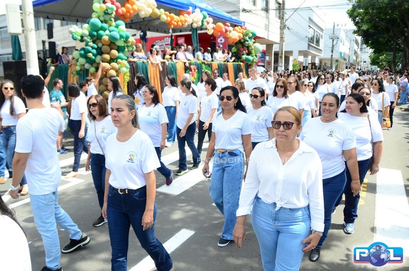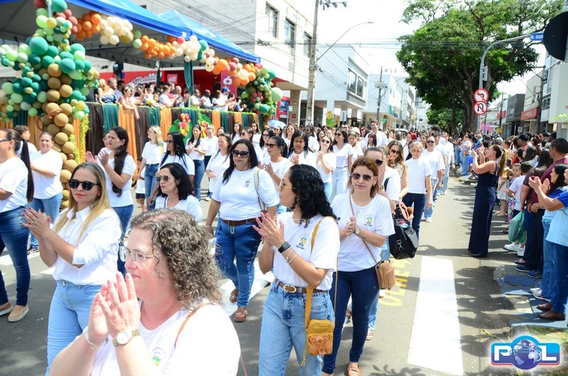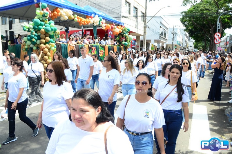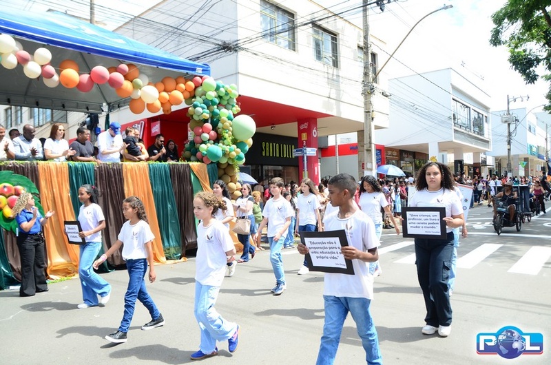 A educação teve destaque no desfile, com a participação de projetos e núcleos da rede municipal, evidenciando ações nas áreas de alfabetização, ensino especializado, línguas, ciências, artes, esportes e tecnologia.