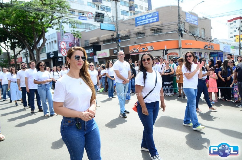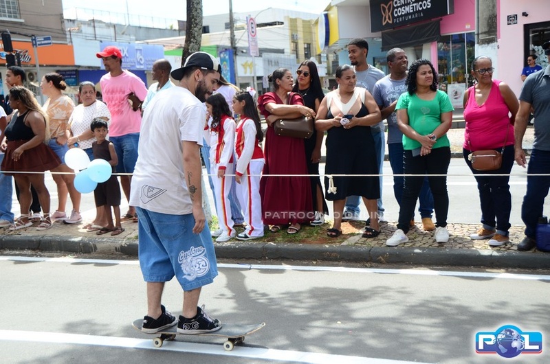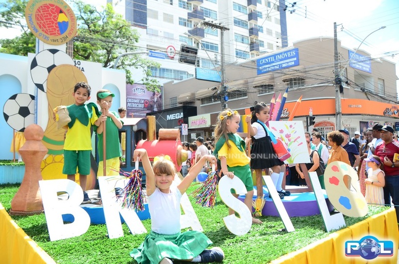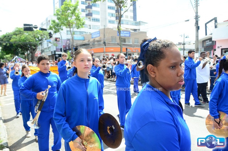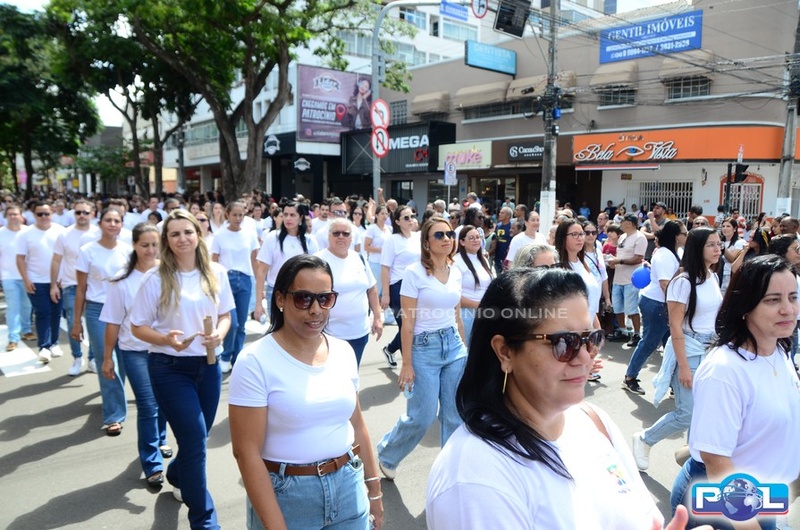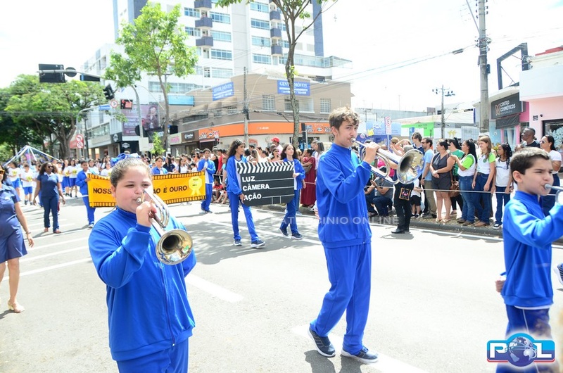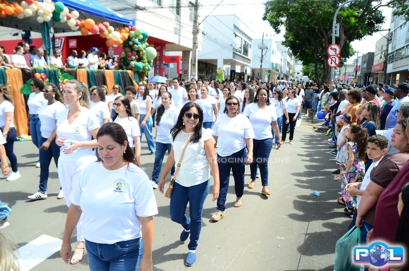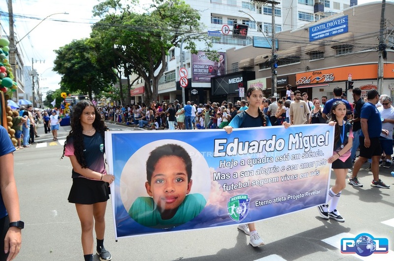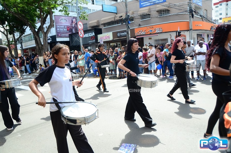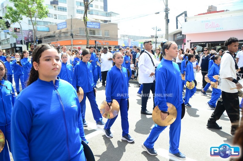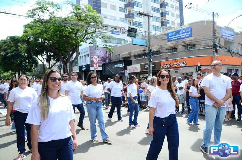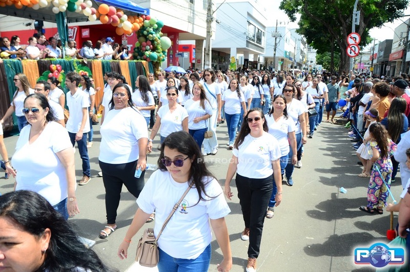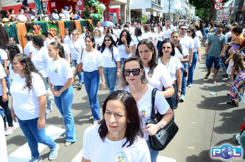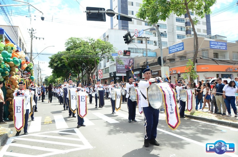 A educação teve destaque no desfile, com a participação de projetos e núcleos da rede municipal, evidenciando ações nas áreas de alfabetização, ensino especializado, línguas, ciências, artes, esportes e tecnologia.