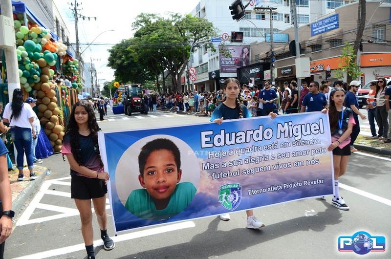 Durante o desfile, houve ainda uma homenagem ao menino Eduardo Miguel, de 10 anos, que faleceu vítima de afogamento no Bosque da Matinha e fazia parte do programa Revelar, emocionando o público presente.