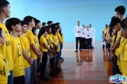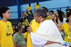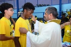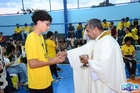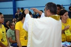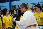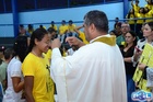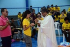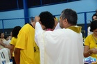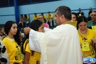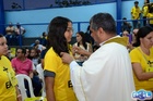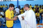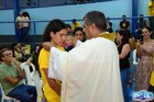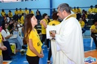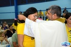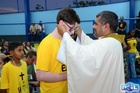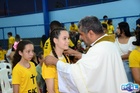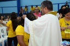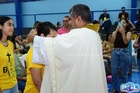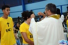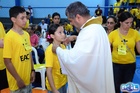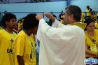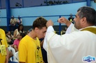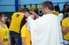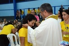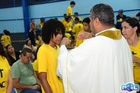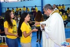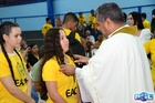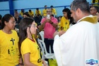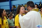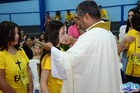 Ao final da Santa Missa, o padre entregou a cada adolescente um crucifixo.