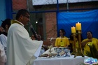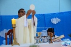 Seguindo o rito, o sacerdote consagrou o Corpo e o Sangue de Cristo.