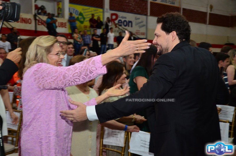 As primeiras-damas colocaram os botons da Prefeitura Municipal de Patrocínio no prefeito e no vice.