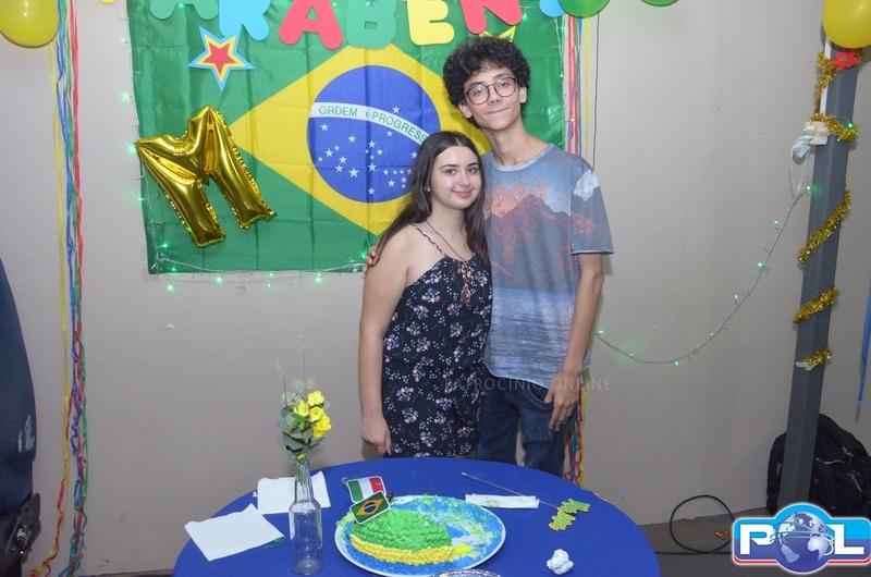A festa que foi promovida pela família brasileira que a recebeu (Danielle, César Alencar, Karen e César Augusto) juntamente com os alunos de sala do IFTM.