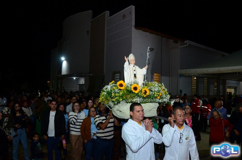 Após, aconteceu a procissão, que seguiu pelo quarteirão da igreja Matriz, com fiéis louvando e cantando a bênção “João de Deus”, composta por Péricles de Barros e Moacir Maciel no ano de 1980, por ocasião da visita do Papa João Paulo II ao Brasil.