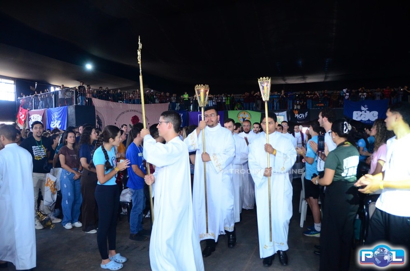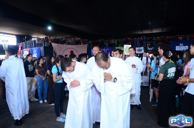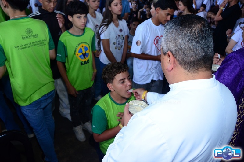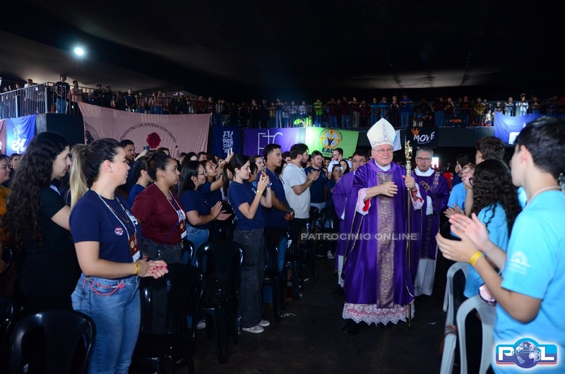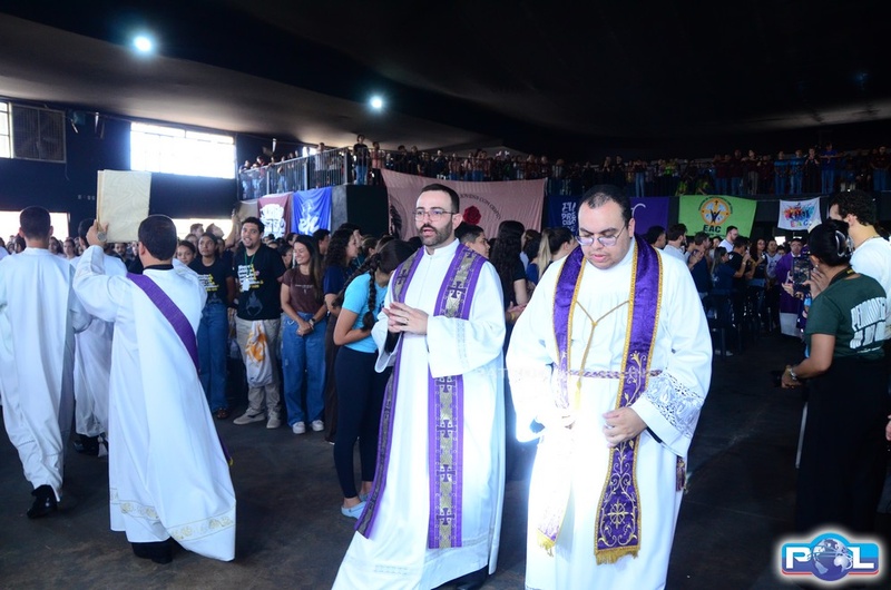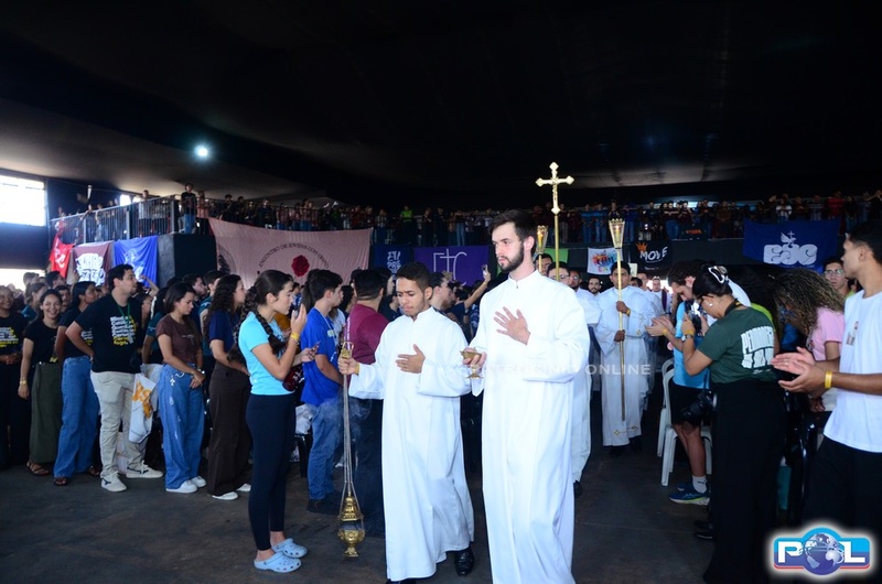 Em um momento emocionante da homilia, Dom Cláudio comparou o Paiolão, local da celebração, à “montanha do Senhor” anunciada pelo profeta Isaías, destacando que, assim como na profecia, os jovens “vieram pressurosos” para subir essa montanha e se encontrar com Deus. Citou ainda outras passagens de Isaías, especialmente a que convida a transformar armas em instrumentos de trabalho, simbolizando a necessidade de substituir tudo o que gera violência e injustiça por ações que promovam a paz, a vida e a justiça. Segundo ele, essa postura é sinal de esperança e expressão concreta do compromisso cristão por um mundo mais fraterno.