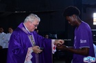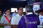 Antes da Santa Missa, a Cruz Peregrina da JDJ foi recebida ao som da canção do Padre Zezinho “No Peito Eu Levo uma Cruz”, juntamente com a entrada do ícone de Nossa Senhora Salus Populi Romani, dos missionários e dos organizadores.