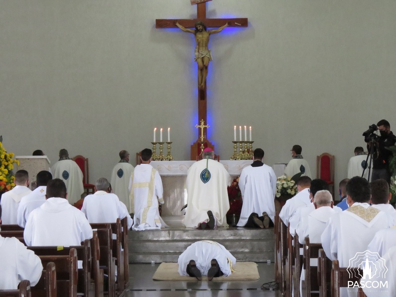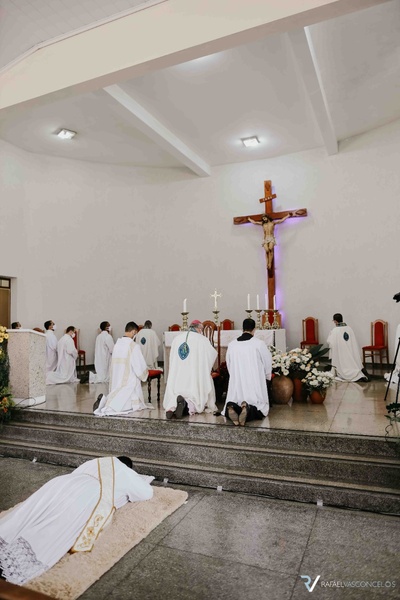 Ainda durante o ritual de ordenação, se colocou diante do bispo para reafirmar seu propósito e prostrou como sinal de total entrega e disposição ao projeto assumido, enquanto a comunidade cantava a ladainha dos santos.