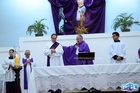 A Santa Missa de despedida reuniu pastorais, movimentos, fiéis, coroinhas, servidores do altar, ministros e integrantes do coral. A celebração foi presidida pelo próprio padre Geraldo Abílio e concelebrada por Osvanio Mariano, Superior Provincial do Brasil e Região do Paraguai da Congregação SS.CC., e pelo futuro pároco da Paróquia São Damião de Molokai, Alexandre Campos.