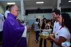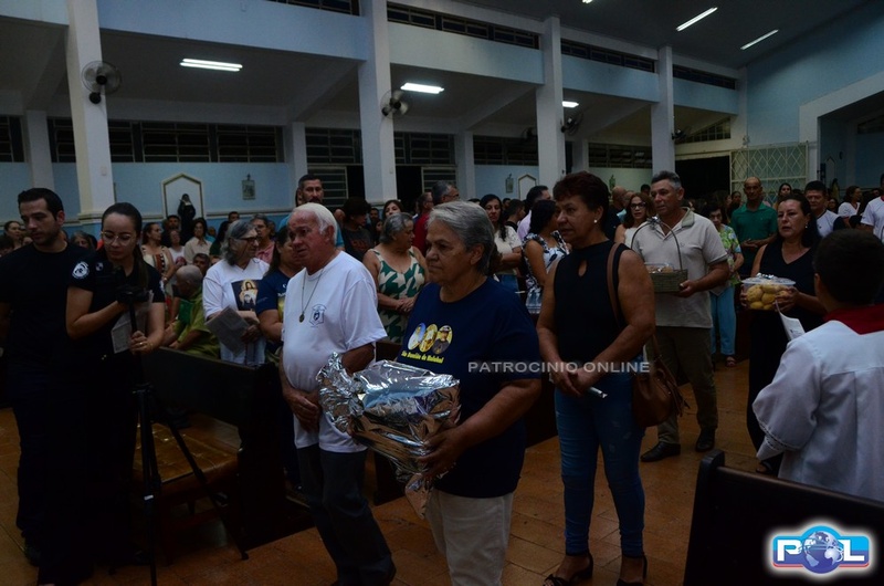 No ofertório, fiéis levaram as âmbulas até o altar, e o sacerdote recebeu presentes em sinal de gratidão.