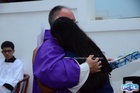 Após a missa, os fiéis tiraram fotos e se despediram com abraços, marcando um momento de emoção e gratidão.