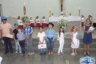 Logo após foi feita a homenagem ao Padroeiro onde três crianças representando a Sagrada Família de Nazaré Jesus, Maria e José distribuiram flores.