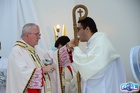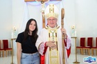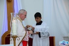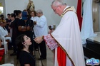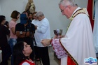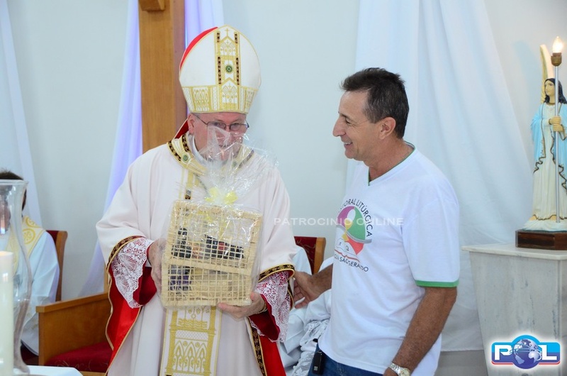 Ao final, o bispo diocesano recebeu um presente da paróquia.