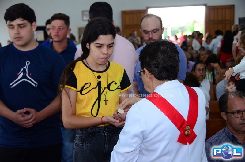 Os fiéis comungaram, recebendo o Corpo de Cristo.
