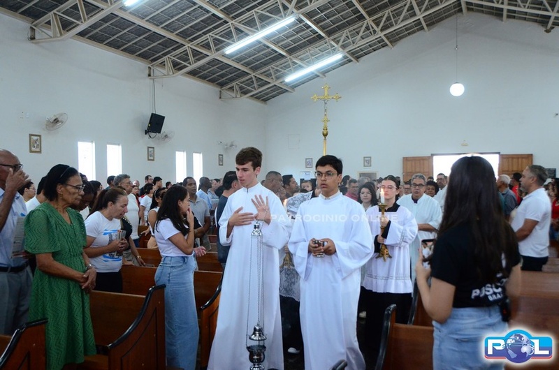 A celebração contou com a participação de ministros, coroinhas, servidores do altar e do coral, reunindo a comunidade para marcar a data especial.
