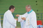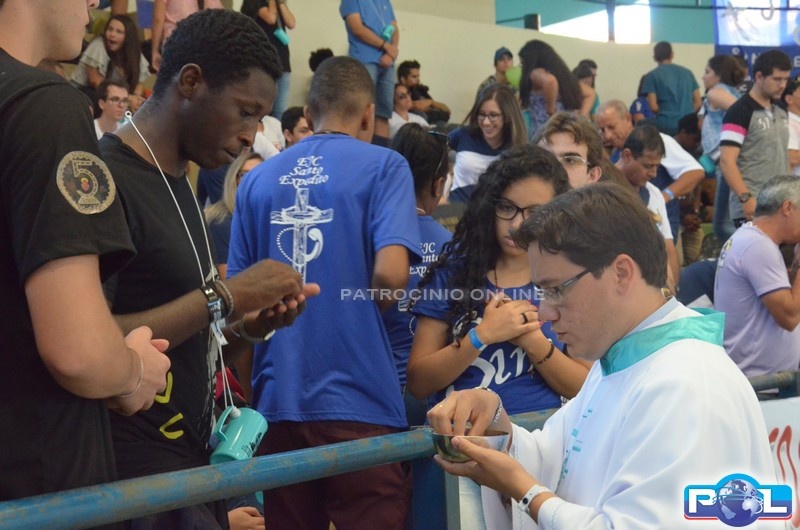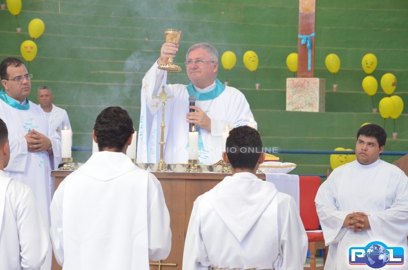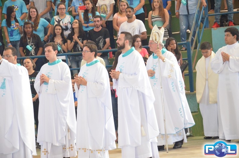 Logo após aconteceu a Santa Missa celebrada pelo Bispo Dom Cláudio Nori Sturm e concelebrada pelos Padres Iram reitor do Seminário de Patrocínio, Lucas Expedito, e Cléber coordenador da Juventude de Diocesana e o Padre Frederico.