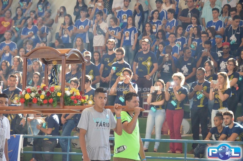 No início do Evento a encenação e procissão com a Cruz Peregrina da Jornada e também os jovens carregando a imagem de Nossa Senhora Aparecida.