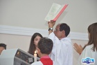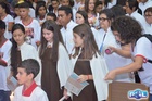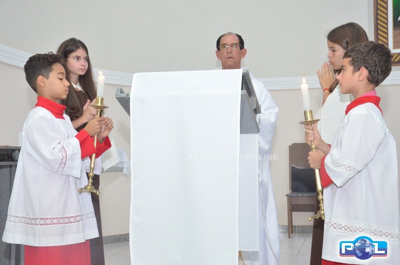 Antes do ofertório os adolescentes entraram com terço, biblia, camisa, sapato.