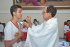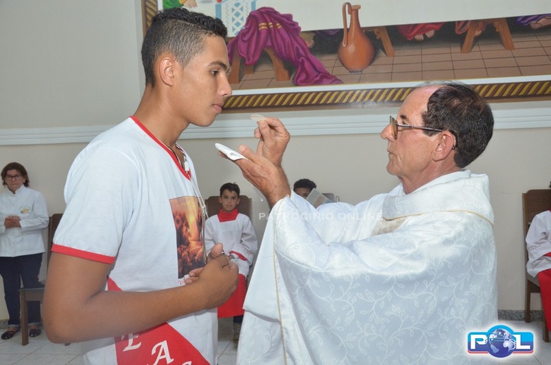 Os adolescentes que haviam permanecido a frente, o Padre os chamou para comungar no altar.