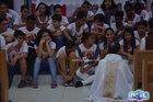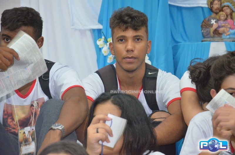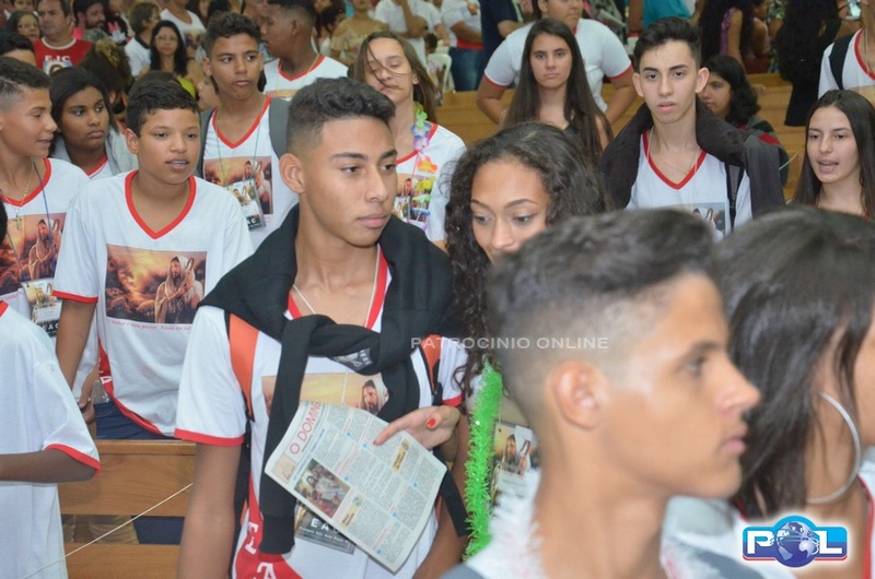 Antes da sua homilia o Padre chamou todos os adolescentes a frente e sentou se no chão juntamente com eles e depois no meio deles onde abordou as leituras do dia 1a Leitura - Isaías 53,10-11, 2a Leitura - Hebreus 4,14-16 e Evangelho - Marcos 10,35-45, quando incentivou os adolescentes a seguirem na caminhada da Igreja.