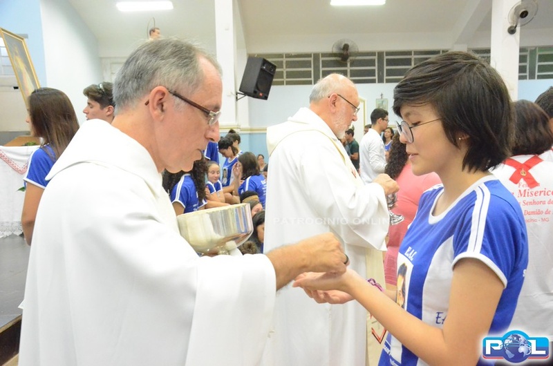 Na comunhão os adolescentes receberam o Corpo e o Sangue de Jesus Cristo.