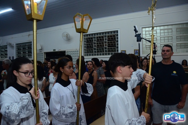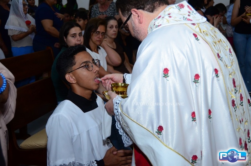 Em seguida, presidiu a Santa Missa com a colaboração dos acólitos, coroinhas, ministros extraordinários da Eucaristia, leitores e do coral da cidade de Patos de Minas.