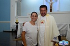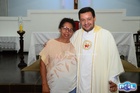 Após o sacedorte tirou fotos com os fiéis.
