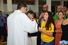Em seguida, o Pároco Geraldo Abílio, ss.cc., lhe aproximou com o Evangelho, e Douglas colocou a mão sobre a palavra de Deus.
