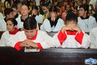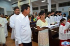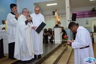 Depois da leitura do Evangelho, Padre Osvânio, ss.cc., ficou sentado, enquanto Douglas permaneceu em pé, sendo interrogado e professando os votos.