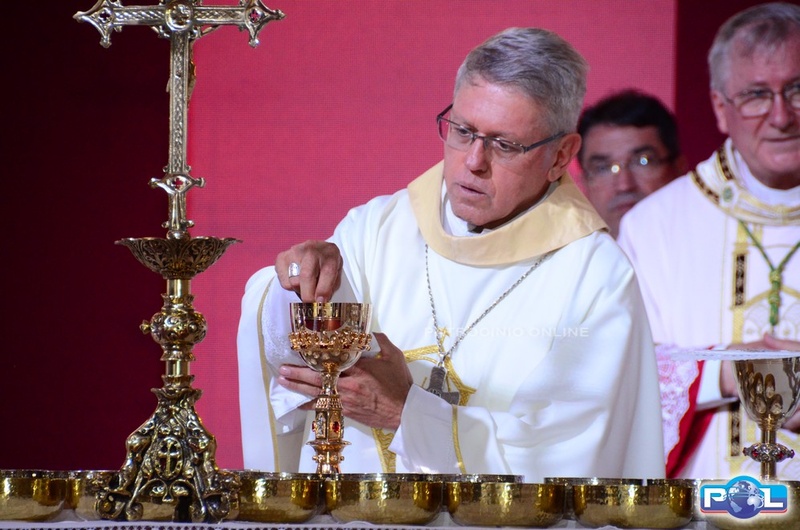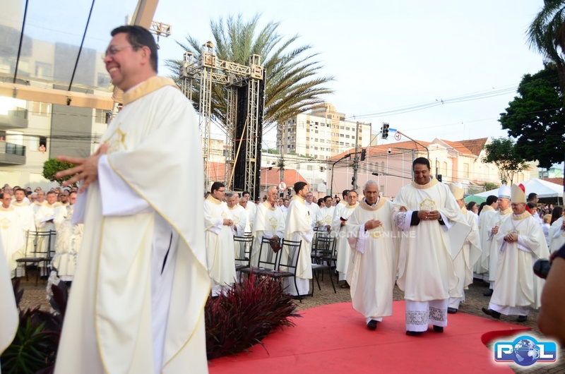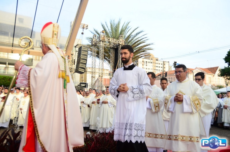 A Santa Missa foi presidida por Dom Cláudio Nori Sturm, bispo diocesano, e concelebrada por Dom Darci José Nicioli, arcebispo de Diamantina; Dom Jorge Alves Bezerra; Dom João Bosco Óliver de Faria, terceiro bispo da Diocese de Patos de Minas e arcebispo emérito de Diamantina; e Dom Antônio Carlos Paiva, bispo coadjutor, oriundo do clero de Patos de Minas.