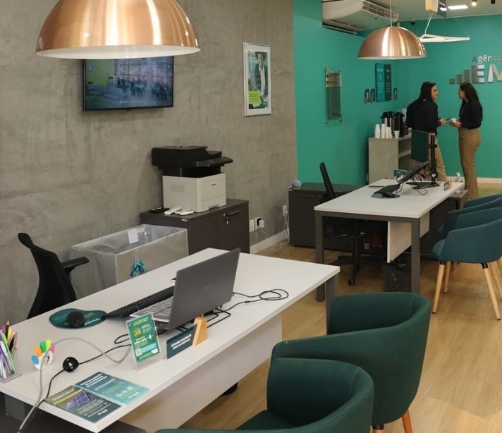 Agência Empreende Coopacredi foi criada para estimular o empreendedorismo cooperativo e aproximar ainda mais a instituição dos cooperados. O espaço conta com expositor de produtos, área instagramável e coworking, voltados à promoção de negócios, conexões e divulgação de marcas, além de um agente do Sebrae para prestar atendimento aos cooperados.