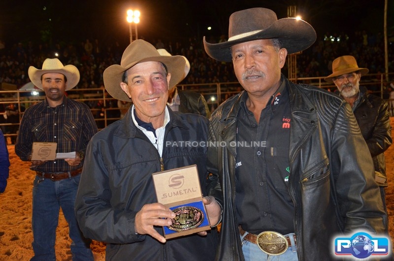 Na final do Rodeio que teve diversas emoções com montarias brilhantes e homenagens aos peões de Cavalo que marcaram época. Os 7 homenageados ganharam fivelas de lembrança.