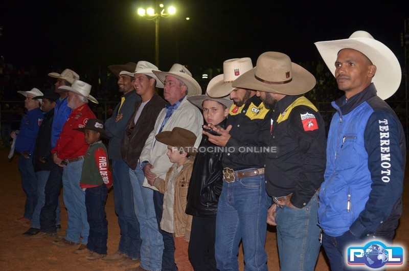 O grande campeão do Rodeio é Evilásio Miranda Moura de Desterro, de Entre Rios (MG$ que na última montaria levou o público ao delírio onde parou no Touro Texano da CIA Terremoto. Recebeu 5 mil reais das mãos do presidente e da Diretoria.