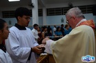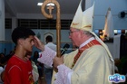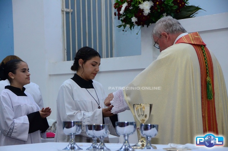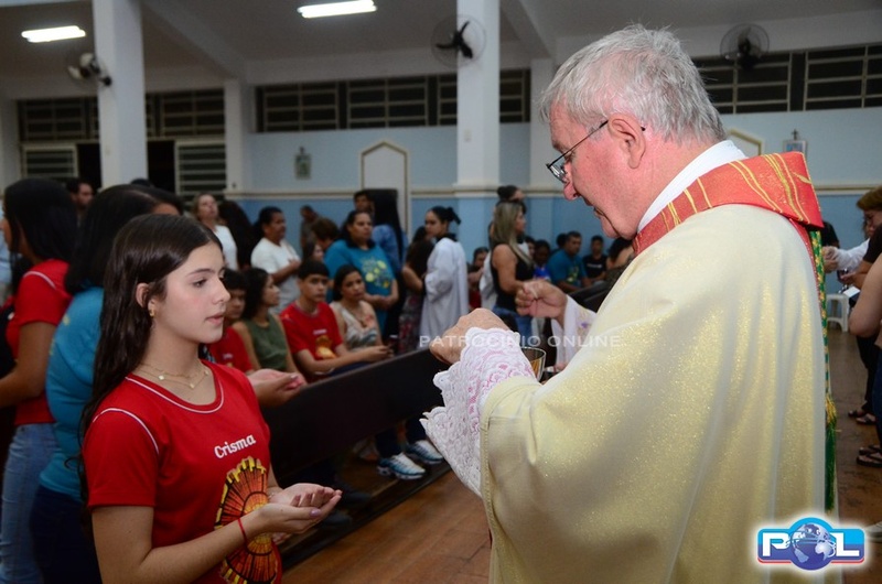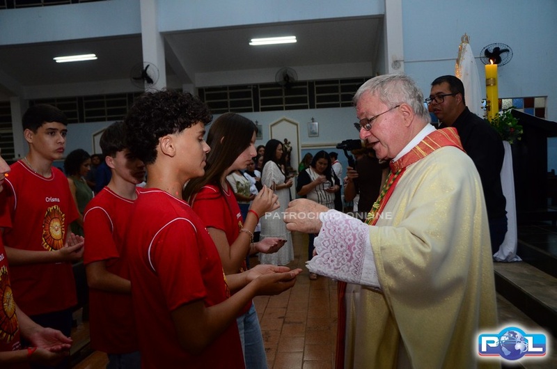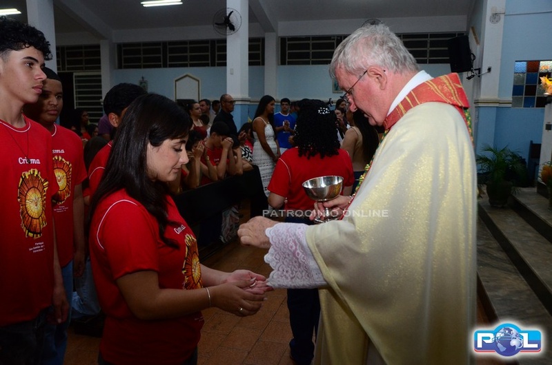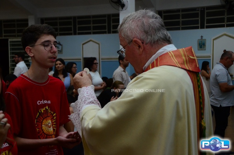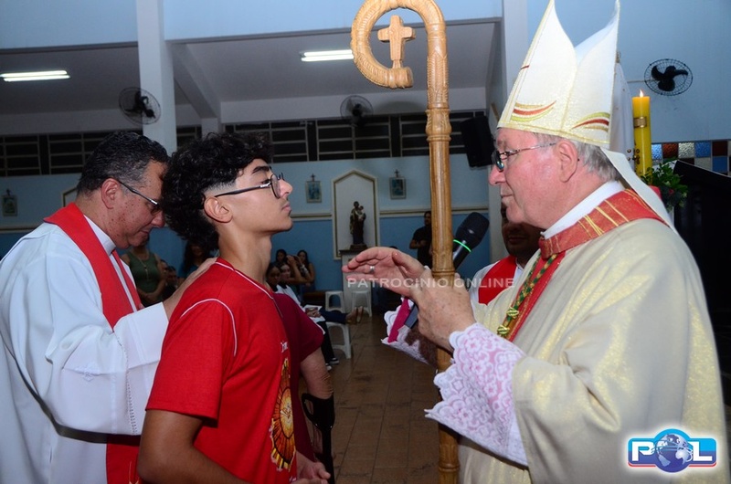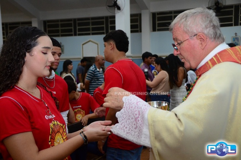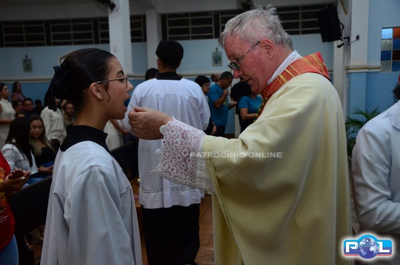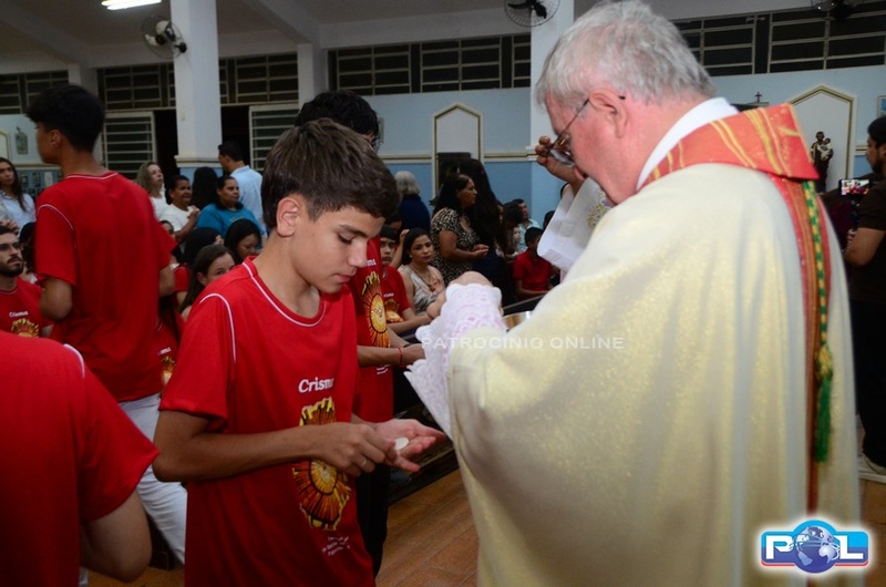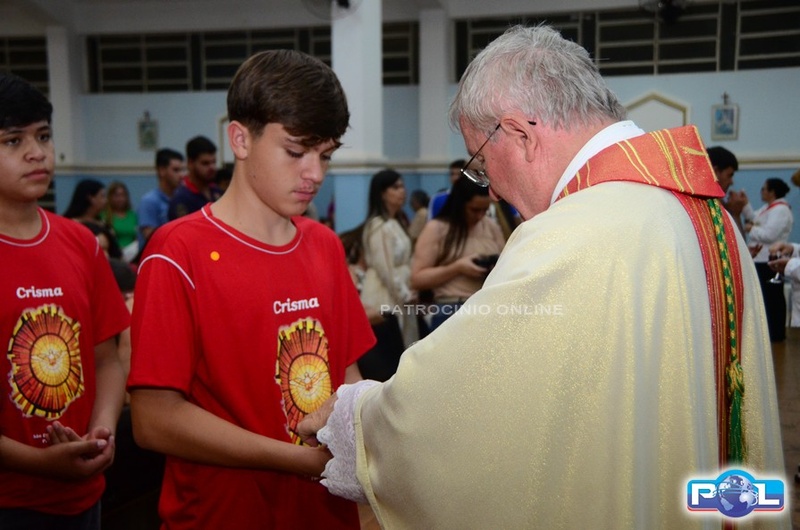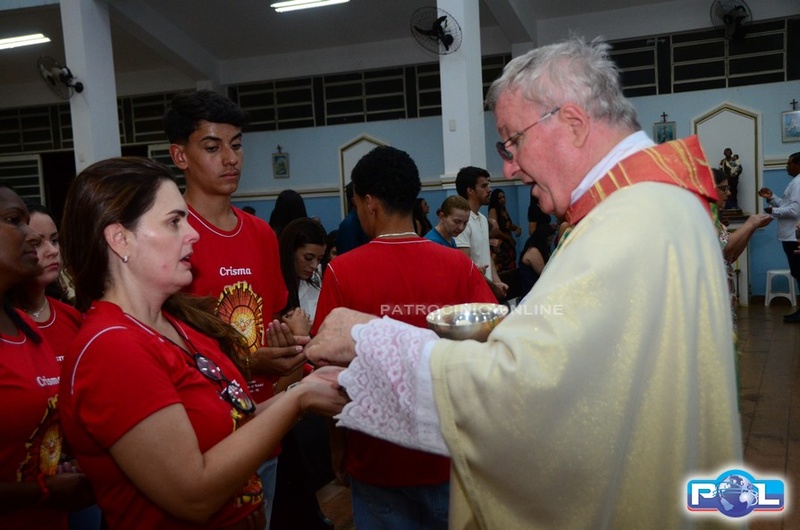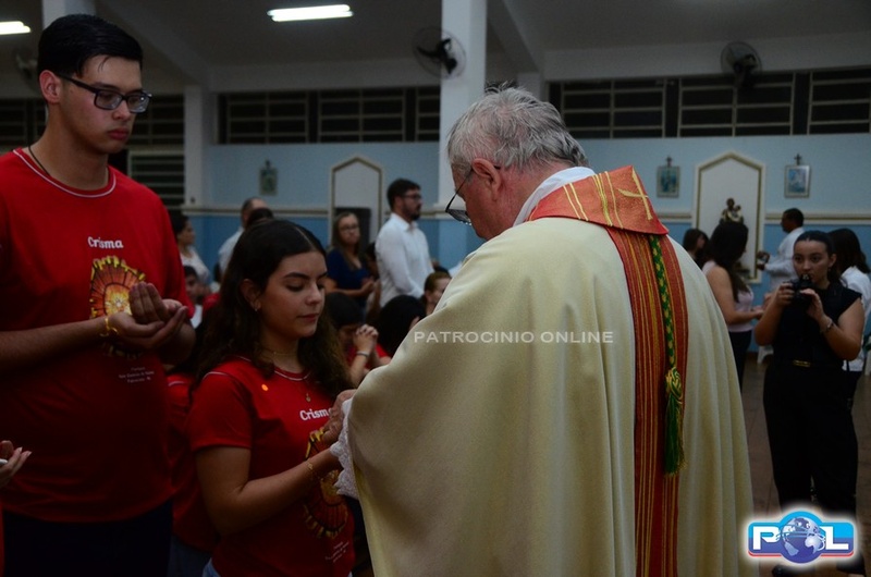 A Santa Missa de imposição das mãos e unção foi presidida por Dom Cláudio Nori Sturm, bispo da Diocese de Patos de Minas, e concelebrada pelo padre Alexandre Campos, ss.cc., e pelo vigário paroquial Élcio, ss.cc. Na terça-feira, também participou o Padre Luiz Antônio, que, além de concelebrar, foi padrinho de Crisma de um dos adolescentes.