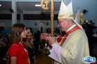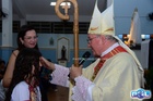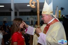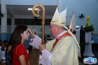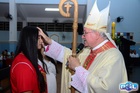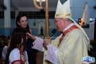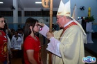 Dando sequência, o bispo estendeu as mãos sobre os confirmados e fez uma oração pedindo a vinda do Espírito Santo, concedendo seus sete dons a todos.