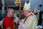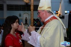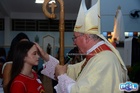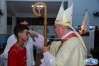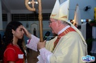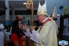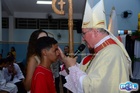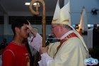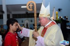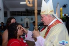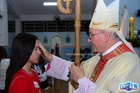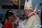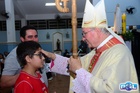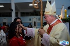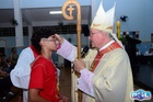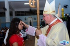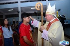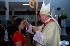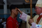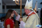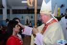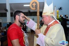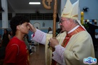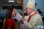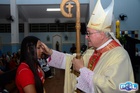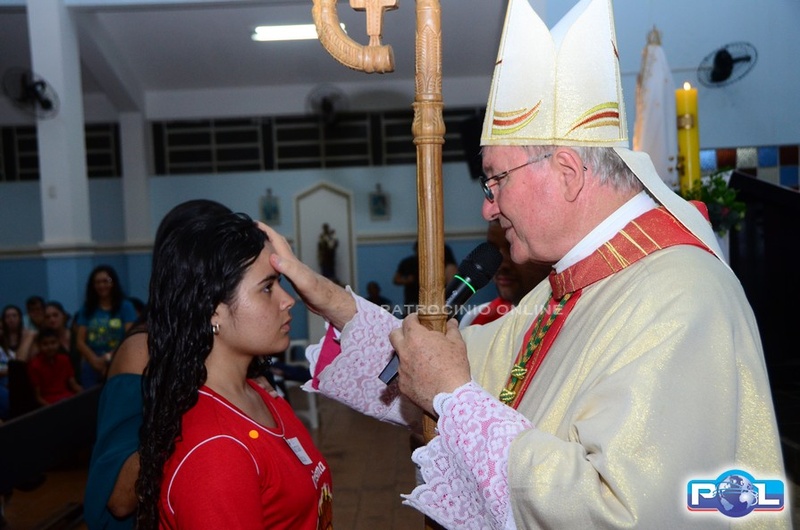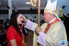 O momento mais aguardado foi quando cada crismando se aproximou de Dom Cláudio, acompanhado de seu padrinho ou madrinha, recebendo na testa o sinal da cruz com o óleo do Crisma.