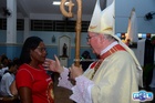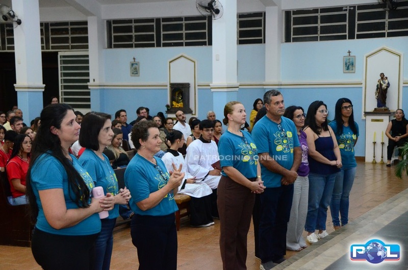 No final da Santa Missa, o padre e o bispo diocesano destacaram a importância dos catequistas, chamando-os à frente.