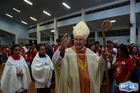 A celebração teve início com a procissão de entrada dos acólitos, coroinhas, ministros, diácono permanente, padres e o bispo, que concedia a bênção aos crismandos, os quais faziam o sinal da cruz.