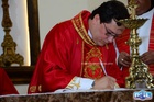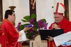 Antes da proclamação do Evangelho, o novo pároco recebeu do bispo o Livro dos Evangelhos, pois é seu dever anunciar a Palavra de Deus a todas as pessoas, sem distinção.