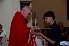 Em seguida, o bispo o conduziu aos lugares fundamentais da vida cristã, como o presbitério, a cadeira presidencial e o Sacrário. Entregou as chaves do Sacrário.